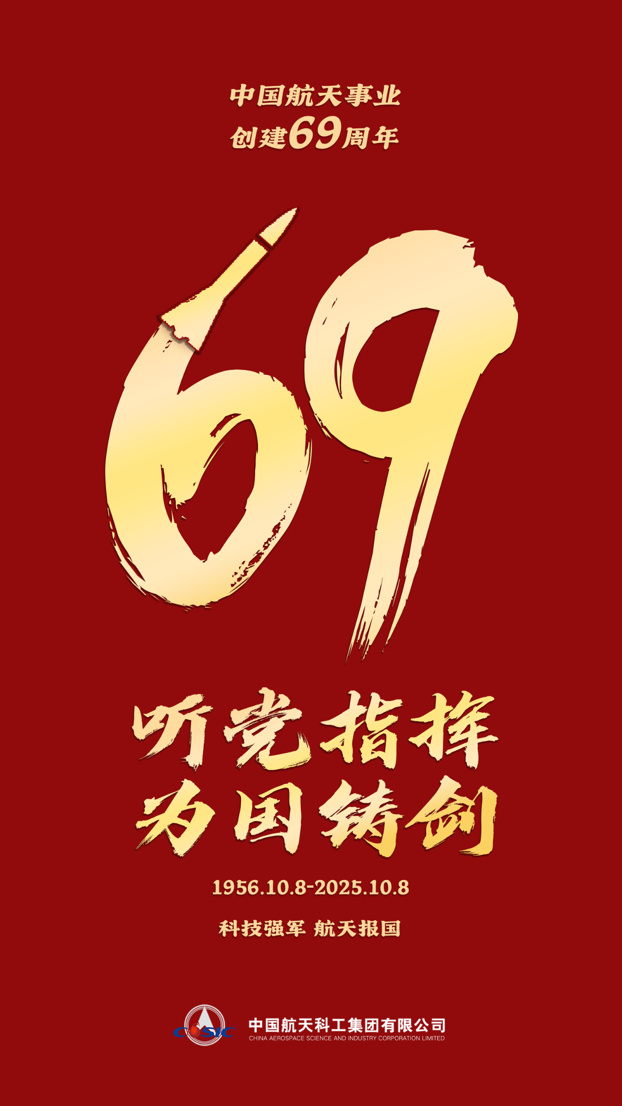 今天是10月8日,中國航天事業創建69周年。