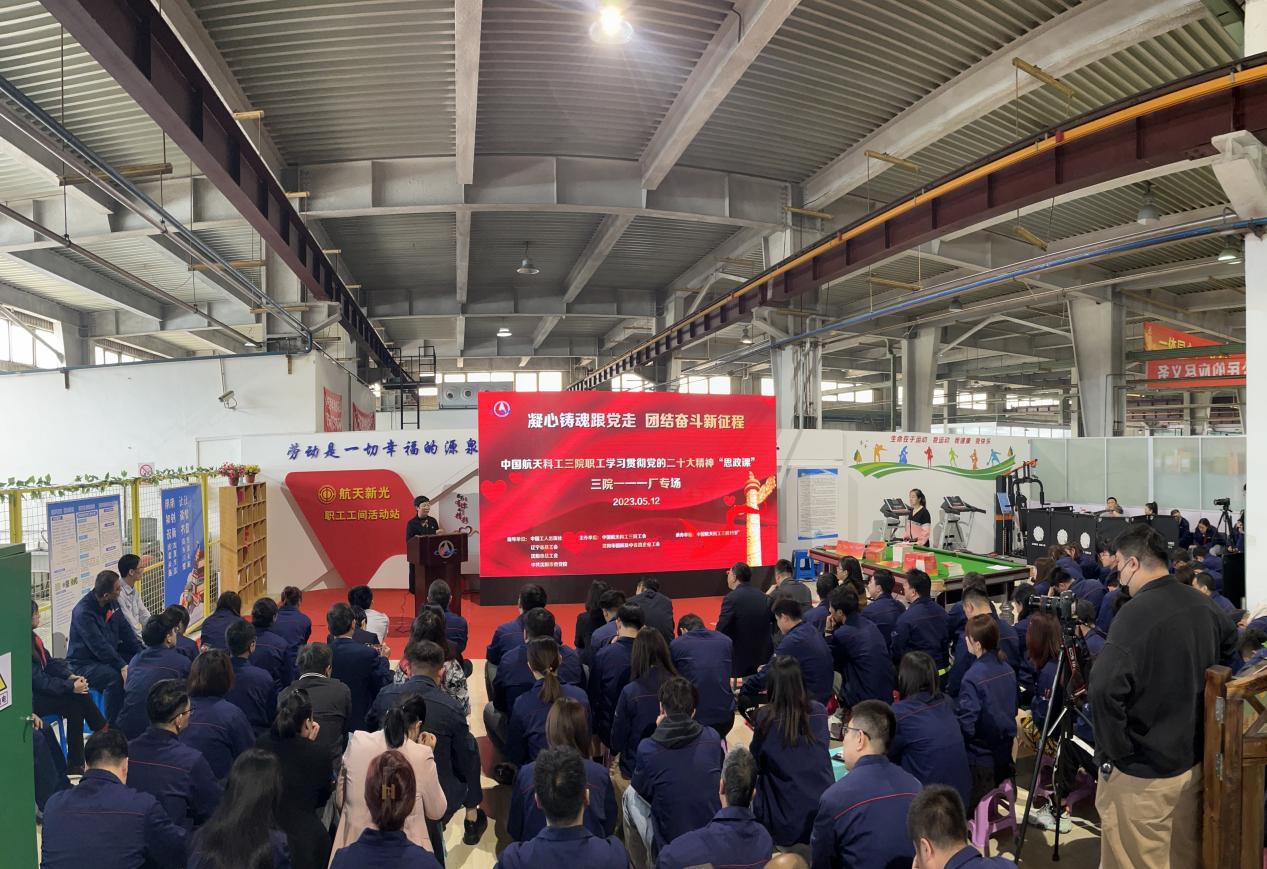三院工會堅決履行團結引導職工群眾聽黨話、跟黨走的政治責任,各級工會組織通過干部培訓班、專題學習等形式線上線下學習黨的二十大精神、中國工會十八大精神。在“飛航e家”上線中國工會十八大新聞中心,千余名職工連續10天打卡學習相關知識并完成答題活動。三院工會創新開設“思政課”,由24位勞模工匠、先進典型組成的宣講團走進8家單位的班組車間、生產一線,用“身邊故事”講活“火熱實踐”。