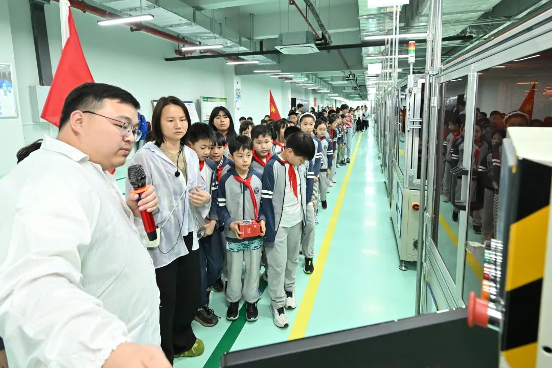 現(xiàn)場科普結(jié)束后,學生們依次進入十院航天電器麻花針智能制造車間參觀。