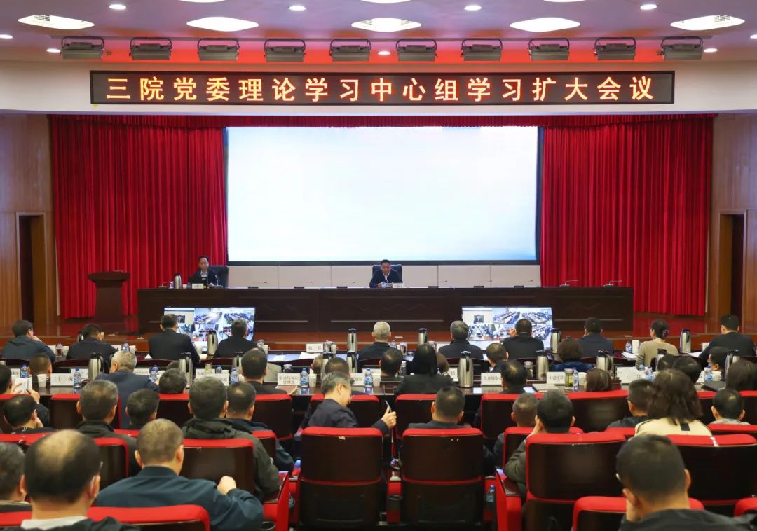 三院全體在家院領(lǐng)導(dǎo)、本部各部門負(fù)責(zé)人,院屬單位領(lǐng)導(dǎo)班子成員,部分單位相關(guān)部門負(fù)責(zé)人等300余人在主會(huì)場(chǎng)和視頻分會(huì)場(chǎng)參加學(xué)習(xí)。三院黨委書(shū)記施毅主持學(xué)習(xí)會(huì)。